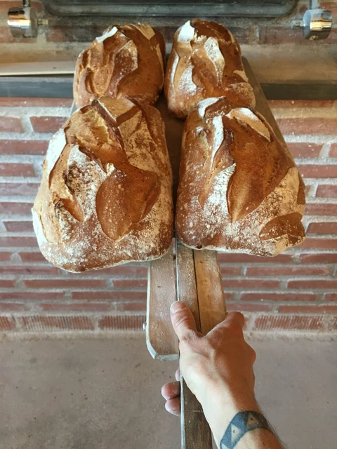Le pain est fait au levain dur en fermentation lente pour plus de valeurs gustatives et permettre une longue conservation. La cuisson se fait dans notre fournil à la ferme dans un four à bois à chauffe directe de 4.40 mètres de diamètre, avec une inertie thermique de plus de 37 tonnes de briques pleines en argile pure et de sable.